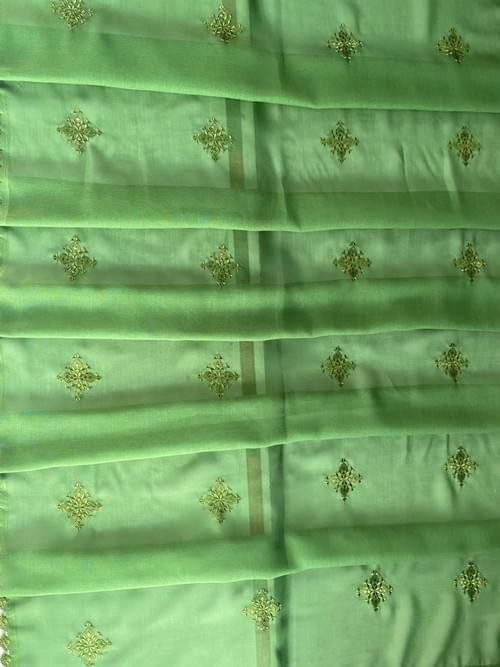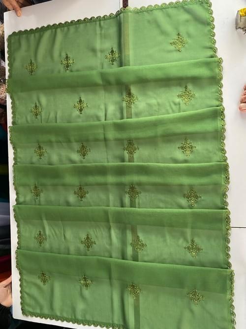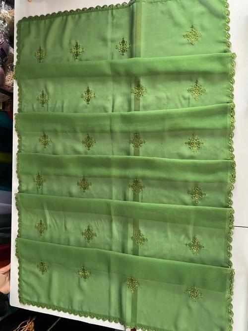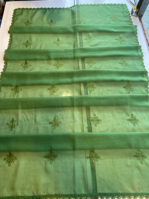 این چادر سبز از مجموعه ابریشم گالری با دوخت دست و پارچه سبک و لطیف تهیه شده است.