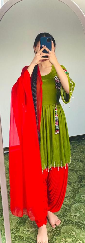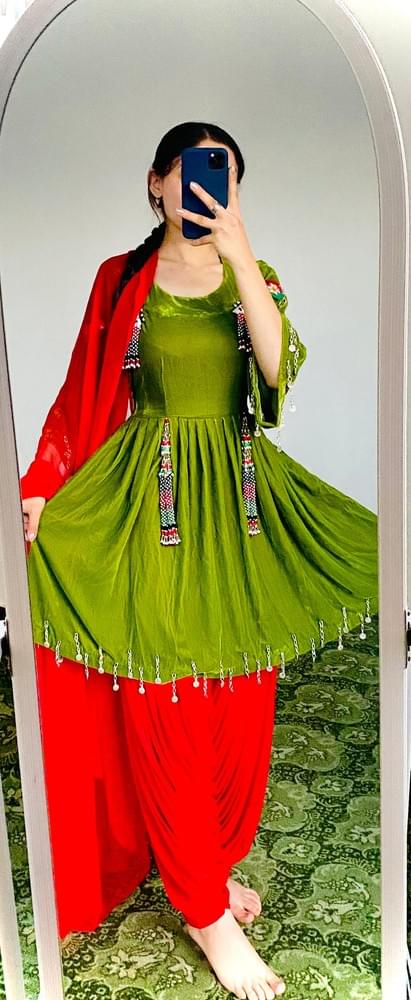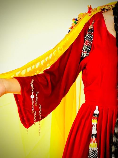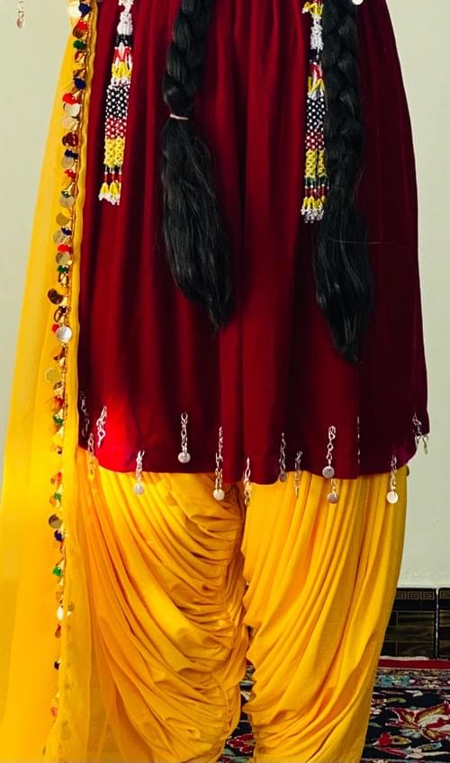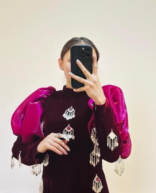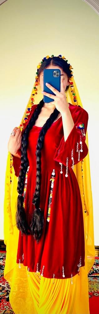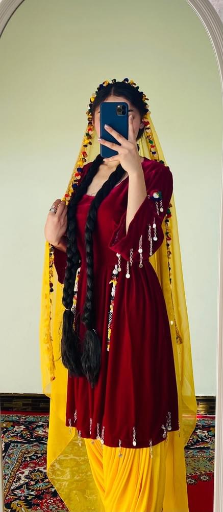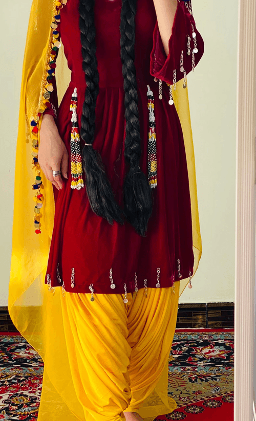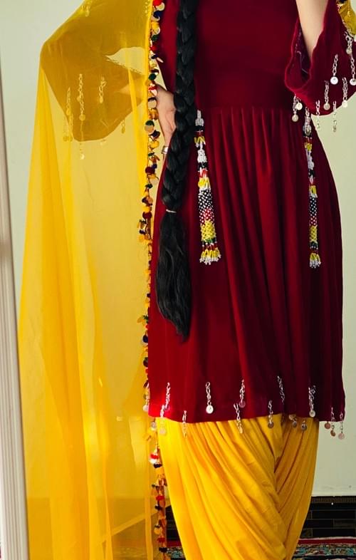 پیراهن مخمل سرخ در کنار شلوار زردِ پرانرژی و شال طلاییِ روان، هماهنگیای میآفریند که در همان نگاه اول دل میبَرَد. این لباس برای لحظههایی ساخته شده که میخواهید با ظاهری ساده، شاد و درخشان وارد جمع شوید و توجهها را به خود جلب کنید.QuantityComing soon