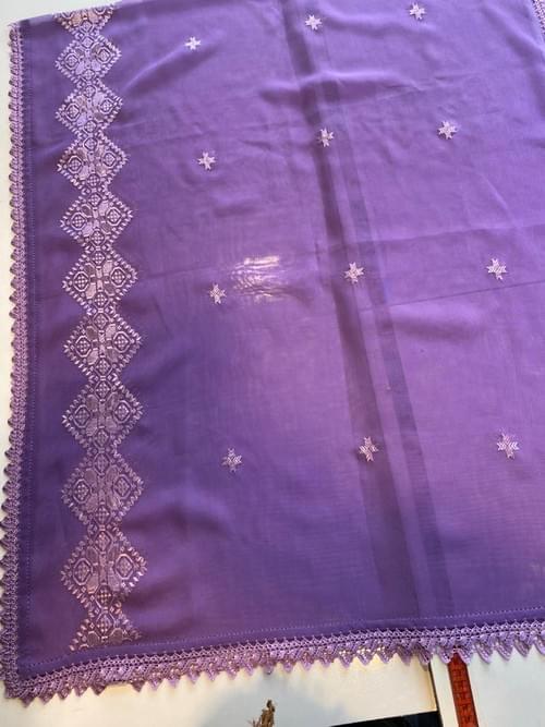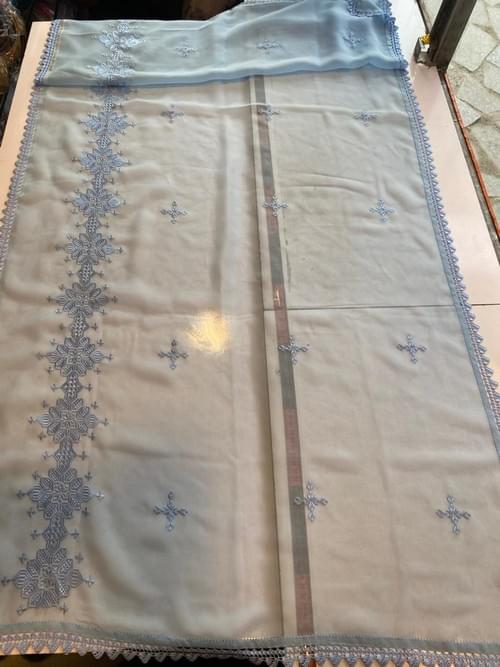 این چادر با دوخت دست و پارچه سبک تهیه شده و جزئیات ظریف گلدوزیشده، جلوهای لطیف و مرتب به آن بخشیده است.QuantityComing soon